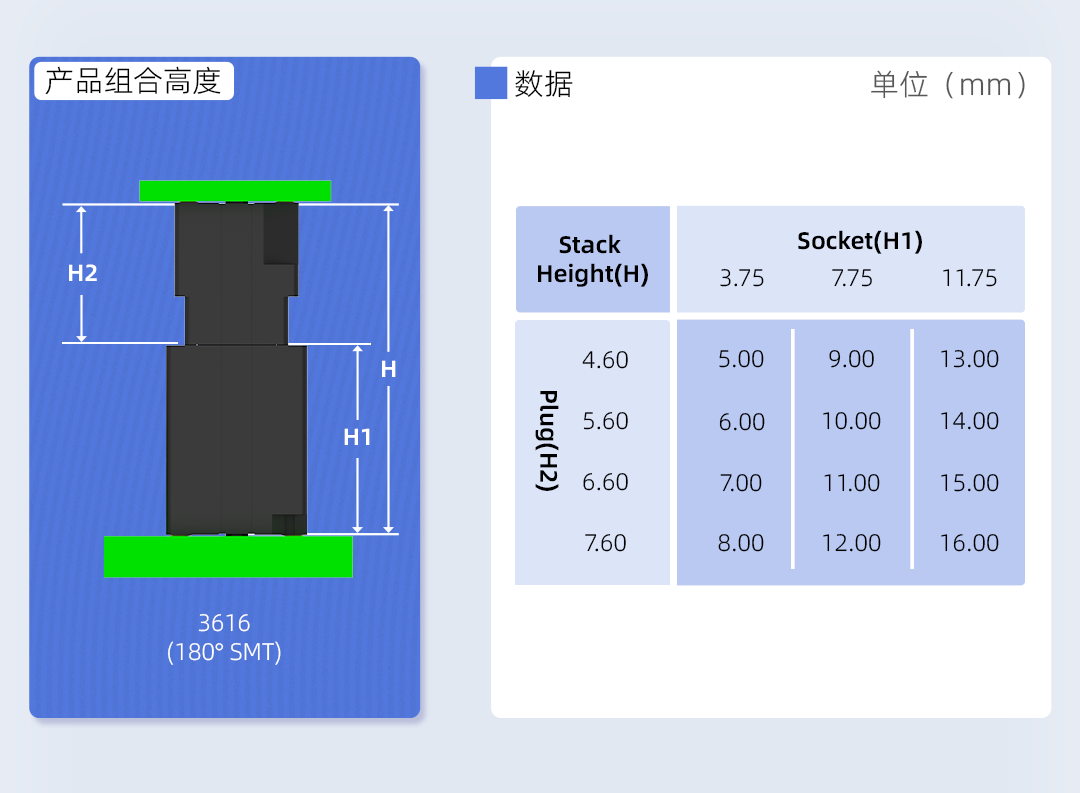 - 堆疊高度:5.00-16.00mm可選。 - 絕緣電阻:500MΩ Min