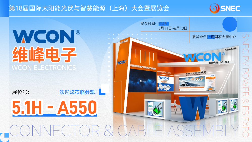 在本次展會(huì)上,WCON 將展示一系列涵蓋廣泛類型和規(guī)格的能量連接器。我們誠(chéng)摯地邀請(qǐng)您蒞臨我們位于上海國(guó)家會(huì)展中心的5.1H-A550展位,共同探討連接技術(shù)的新趨勢(shì)。